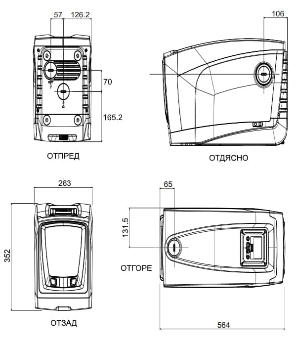 Във вертикално положение – Ш Д В – 263 х 352 х 564 mm