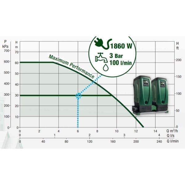 Благодарение на инверторите и синхронните двигатели на сдвоените с този док E.SYBOX хидрофори, се постига значителна икономия на изразходваната енергия, без хидравлични удари и се намаля общия стрес върху тръбите и фитингите по инсталацията.