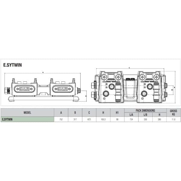 DAB E.SYTWIN се използва за сдвояване на два пълноразмерни хидрофора DAB E.SYBOX (не mini) при системи, в които е наобходим по-голям дебит/напор и/или се залага работа на хидрофорната инсталация чрез редуване на помпите.