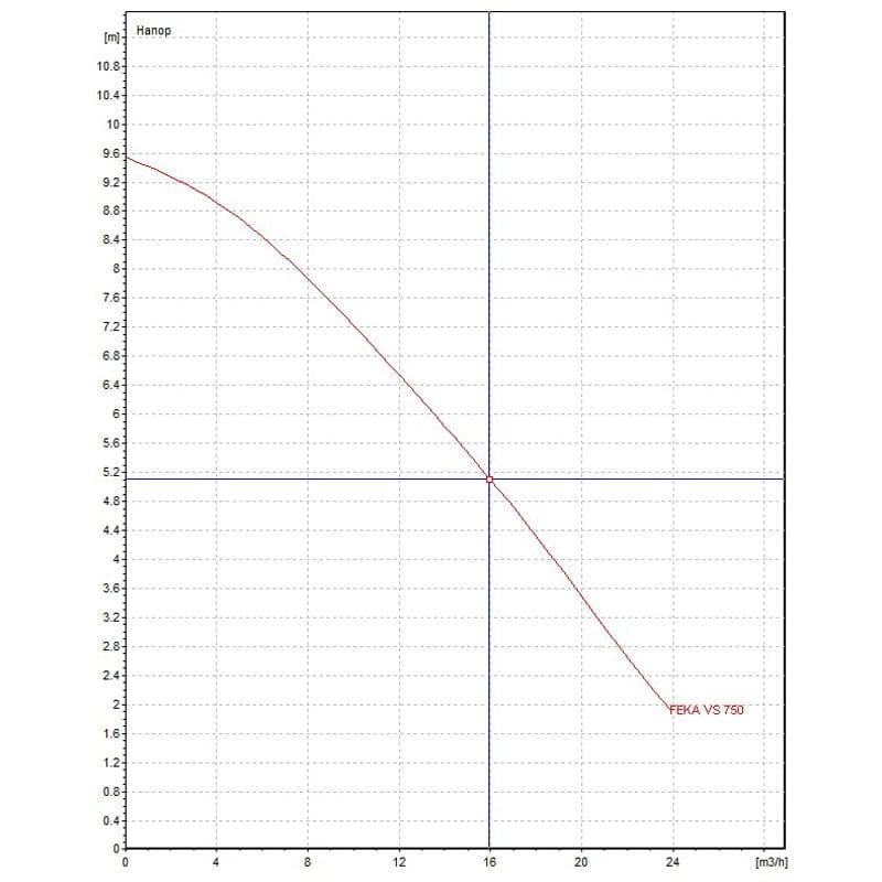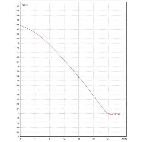 FEKA VS 750 M-A е потопяема центробежна помпа, проектирана за изпомпване на отпадни и фекални води с примеси на твърди частици до 50 мм. Тя е изработена от неръждаема стомана и има отворено вихрово (Vortex) работно колело, което осигурява ефективна работа с замърсени флуиди.
