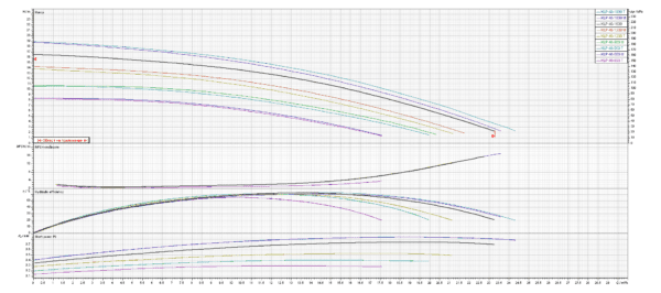 - Работен диапазон: от 2 до 84 м3/ч с напор до 23,4 метра.