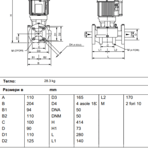 - Стандартни фланци: DN 40, DN 50, DN 65, DN 80 (PN 6/PN 10, 4 отвора)