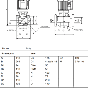 Конструктивни характеристики на помпата: