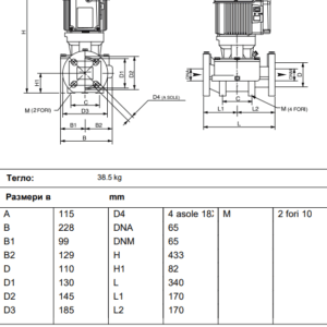 - Стандартни фланци: DN 40, DN 50, DN 65, DN 80 (PN 6/PN 10, 4 отвора)