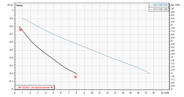 - Работен диапазон: Захранване с въздух 2-17 m³/h при дълбочини от 20 до 90 cm от входната ос