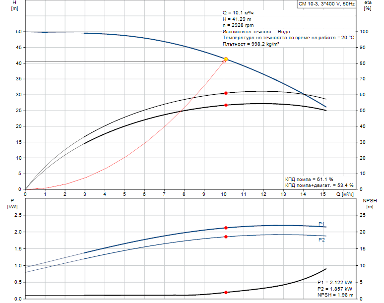 Скорост на помпата, при която са базирани нейните данни: 2900 rpm