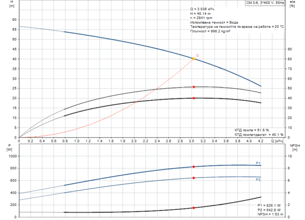 Grundfos CM 3-6 3~220V – трифазна многостепенна помпа с 3.1 м³/ч дебит и 42 m напор. Неръждаем вал и работни колела, 0.65 kW мотор, компактна и надеждна конструкция.