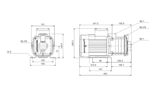 Компактна, надеждна, многостепенна центробежна помпа с крайно всмукване, с аксиален смукателен вход и радиален нагнетателен изход. Използва се за пренос на чиста вода в битови и индустриални системи, с фокус върху висока ефективност и дълъг експлоатационен живот. Работните елементи от неръждаема стомана осигуряват устойчивост на корозия и износване. Свързването към тръбната система е чрез вътрешни Whitworth резби (Rp ISO 7/1).