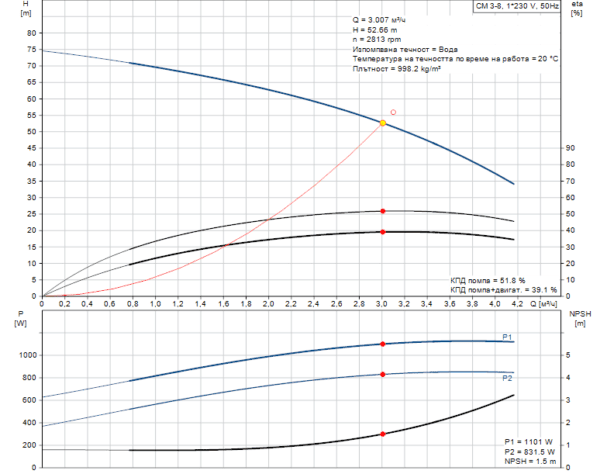 • Реален дебит (калкулиран): 3.007 м³/ч