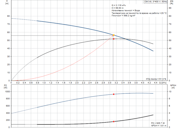 - Скорост на помпата на която са базирани данните: 2900 rpm