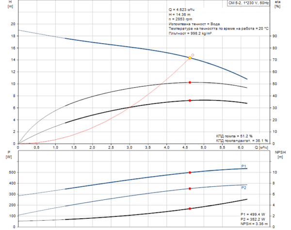 - Номинален напор: 22.76 m