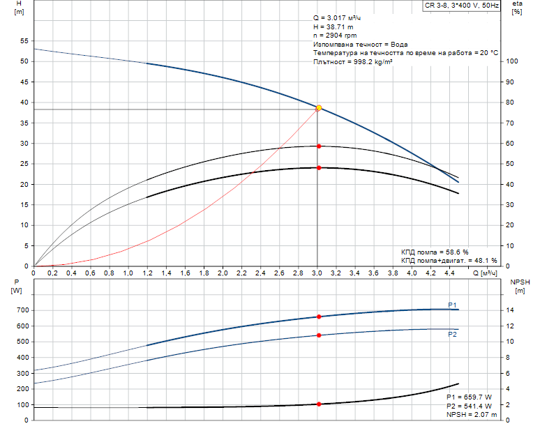 - Напор: 38.71 m