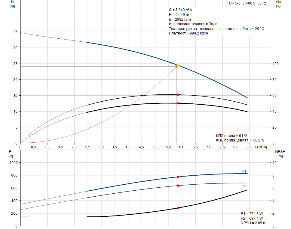 Grundfos CR 3-4 – вертикална многостъпална помпа с дебит 3.013 м³/ч и напор 19.19 m