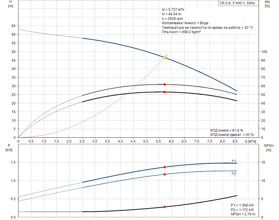 - Напор: 46.54 m