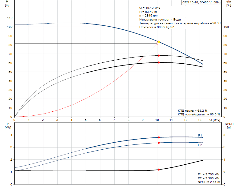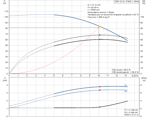 Скорост на помпата, на която се базират данните за помпата: 2917 rpm