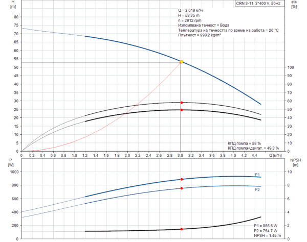 Мощност (Р2), изисквана от помпата: 1.1 kW