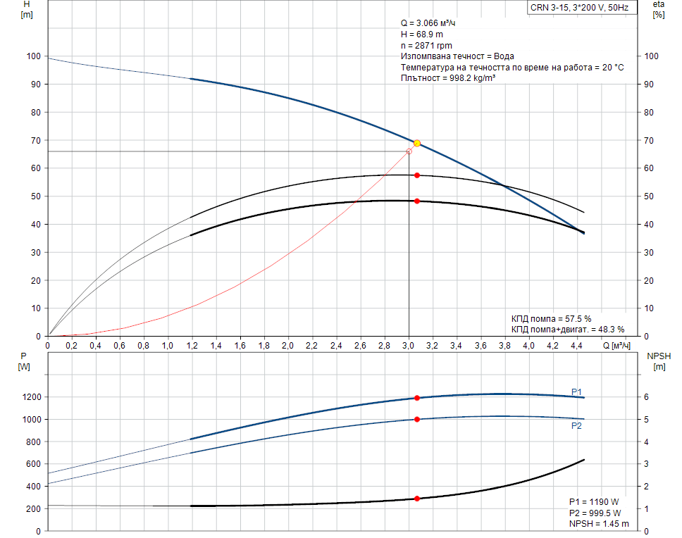 Мощност (Р2), изисквана от помпата: 1.1 kW