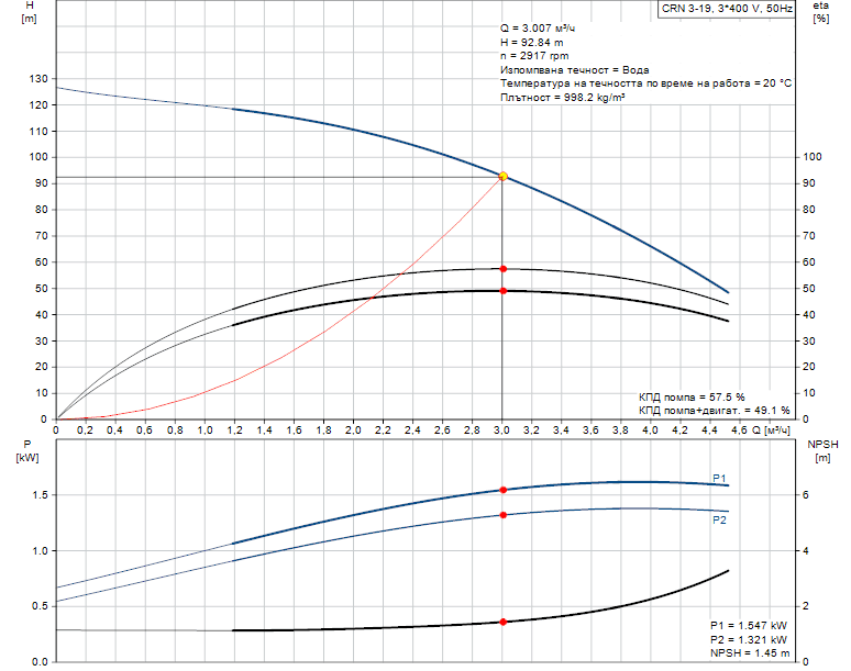 Мощност (Р2), изисквана от помпата: 1.5 kW