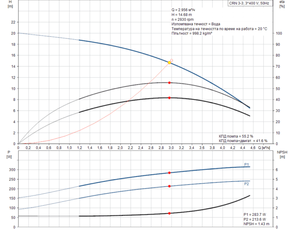 Резултатен напор на помпата: 14.68 m