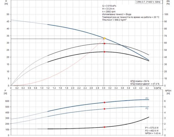 Мощност (Р2), изисквана от помпата: 0.55 kW
