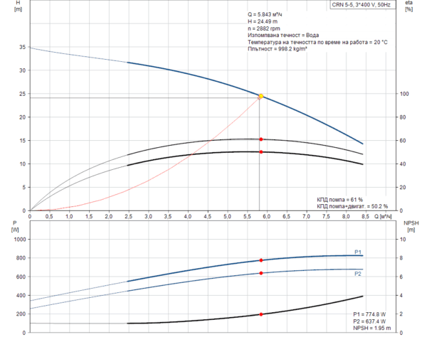 Мощност (Р2), изисквана от помпата: 0.75 kW