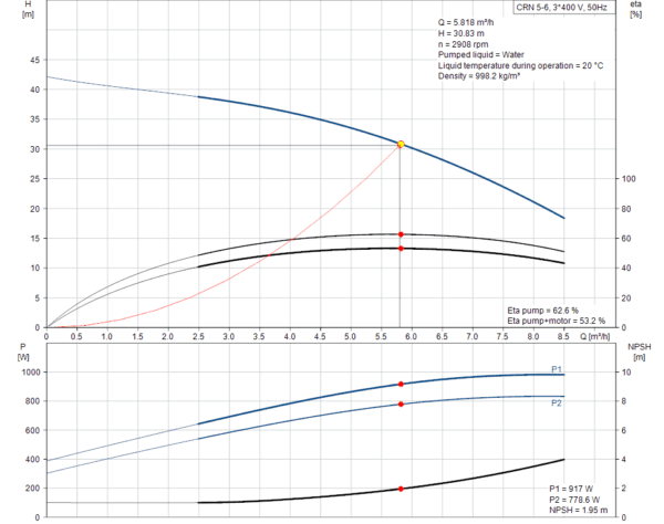 Мощност (Р2), изисквана от помпата: 1.1 kW