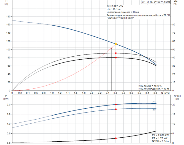 Резултатен напор на помпата: 113.1 m