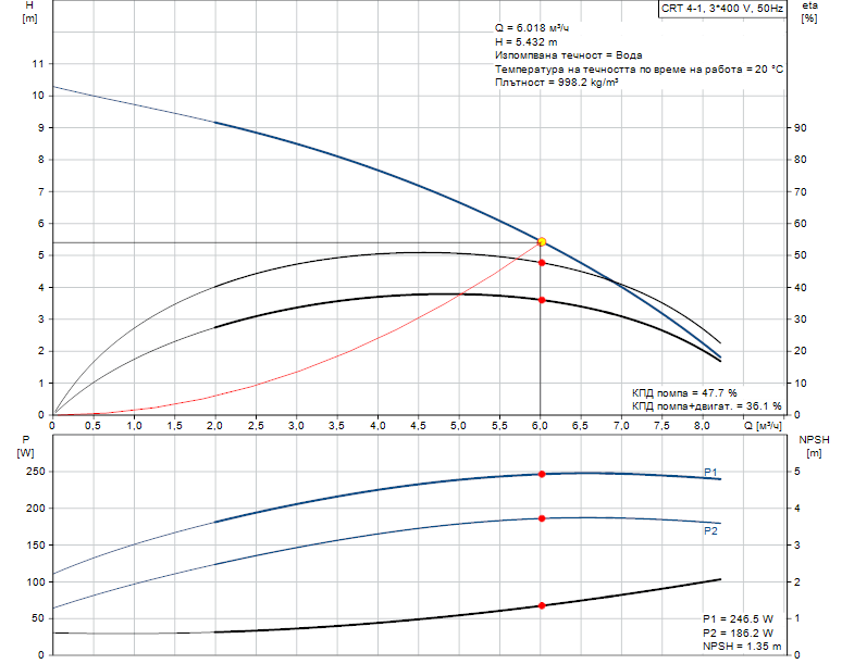 Резултатен напор на помпата: 5.432 m