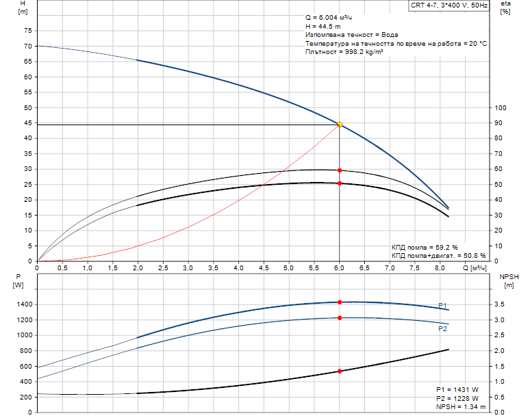 Мощност (Р2), изисквана от помпата: 1.5 kW