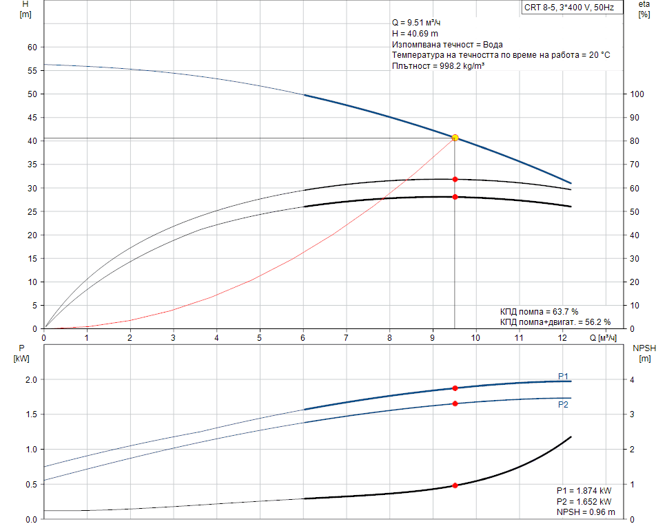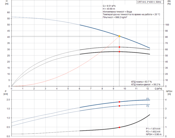 Мощност (Р2), изисквана от помпата: 2.2 kW