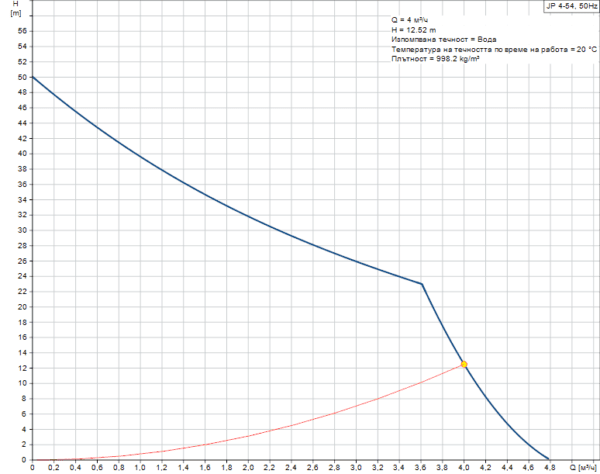 Grundfos JP 4-54 S-BBVP е самозасмукваща едностъпална центробежна джет помпа с аксиален вход и радиален изход за лесно пригаждане към локална тръбопроводна система. JP помпата е идеална за пренос на вода от кладенци или наземни резервоари в голямо разнообразие от инсталации и се характеризира с отлични свойства на самозасмукване.