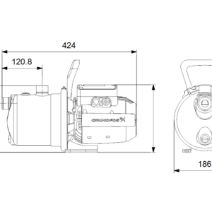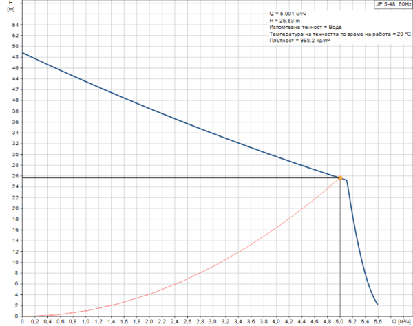 Grundfos JP 5-48 S-BBVP е самозасмукваща едностъпална центробежна джет помпа с аксиален вход и радиален изход за лесно пригаждане към локална тръбопроводна система. JP помпата е идеална за пренос на вода от кладенци или наземни резервоари в голямо разнообразие от инсталации и се характеризира с отлични свойства на самозасмукване.