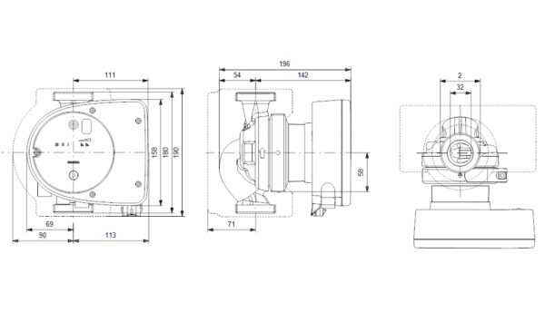 - Разстояние между входния и изходния фланец: 180 mm