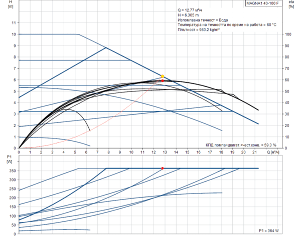 • Резултатен напор на помпата: 6.305 m