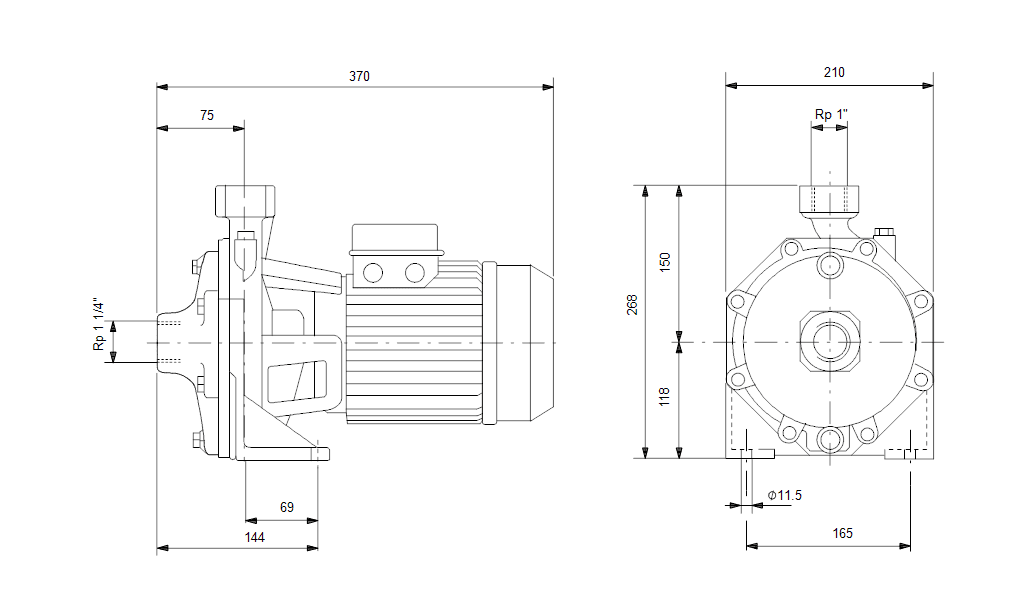 Изход на помпата: Rp 1″