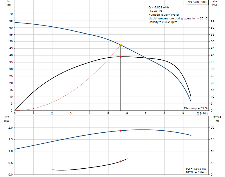Резултатен напор на помпата: 47.53 m