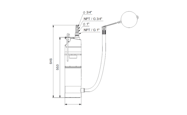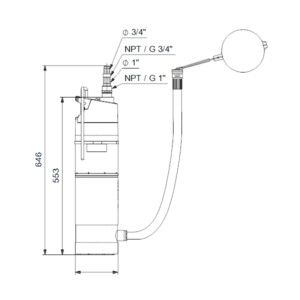 Помпата е с вход отстрани за гъвкав маркуч с плаващ смукателен филтър.