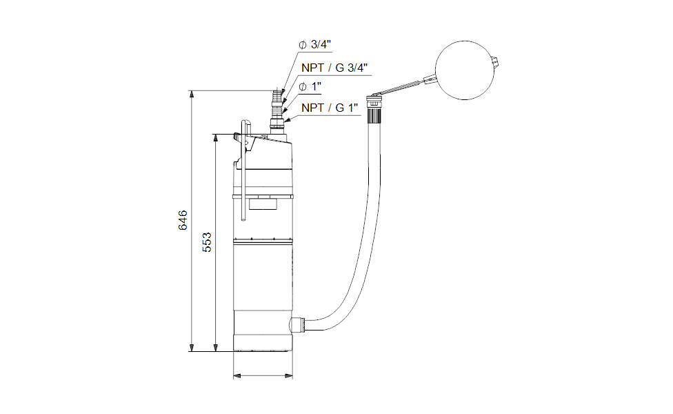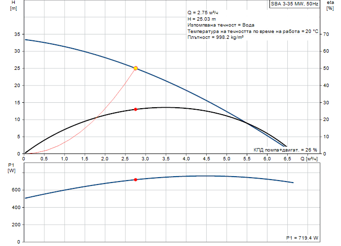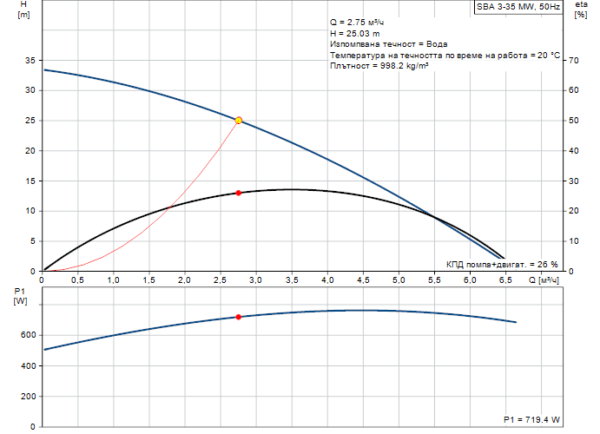 SBA 3-35 MW е окомплектован с 15 m захранващ кабел, като максималната монтажна дълбочина е 10 m под нивото на водата и температурата на течността варира от 0 °C до 40 °C.