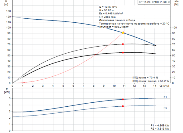 - Скорост на помпата на която са базирани данните: 2900 rpm