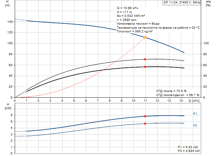 - Скорост на помпата на която са базирани данните: 2900 rpm