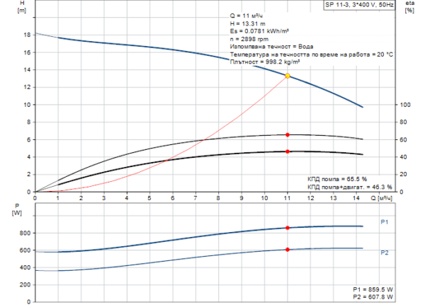 - Скорост на помпата на която са базирани данните: 2900 rpm