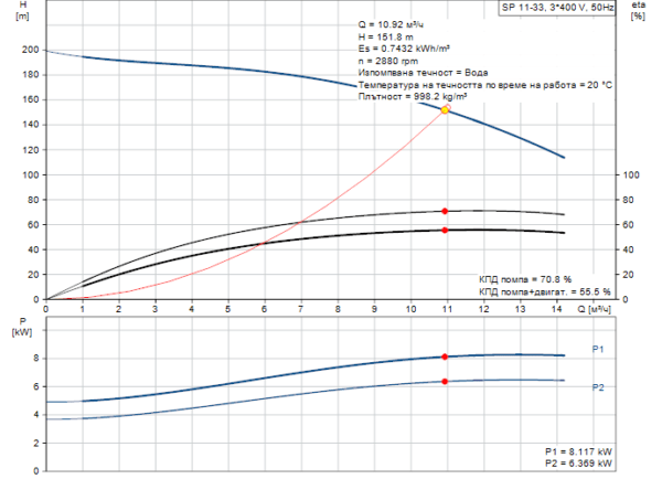 - Скорост на помпата на която са базирани данните: 2900 rpm