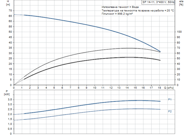 - Скорост на помпата на която са базирани данните: 2900 rpm