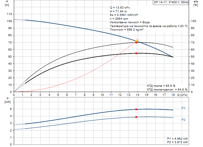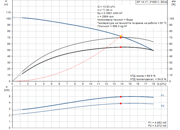 - Скорост на помпата на която са базирани данните: 2900 rpm