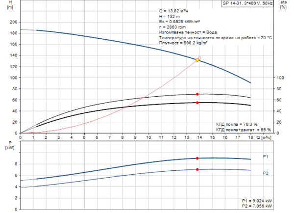 - Номинален напор: 132 m