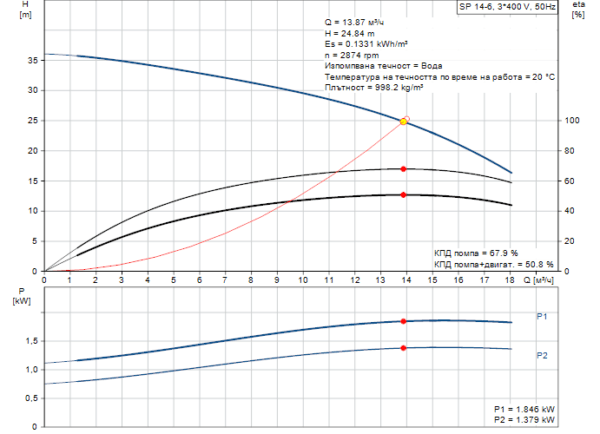 - Скорост на помпата на която са базирани данните: 2900 rpm