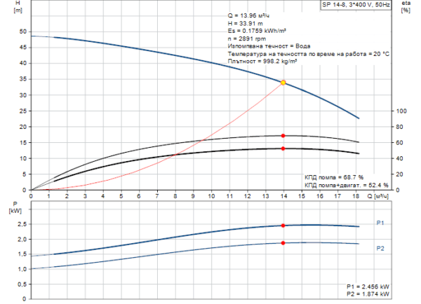 - Скорост на помпата на която са базирани данните: 2900 rpm