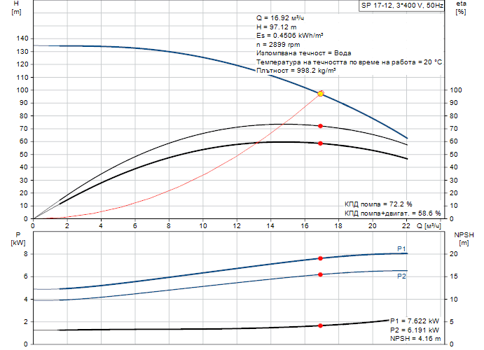 - Скорост на помпата на която са базирани данните: 2900 rpm