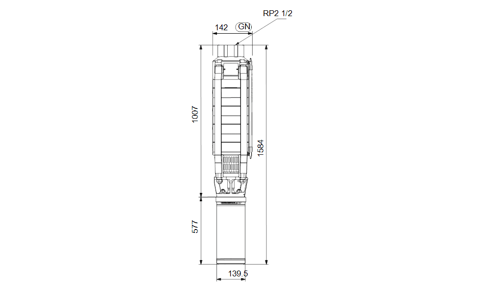 Помпата е оборудвана с двигател 7.5 kW MS6000 с прахозащитен щит, маншетно уплътнение, с петови лагери на водно смазване и обемно компенсираща мембрана. Двигателят е капсулован потопяем, предлагащ добра механична устойчивост и висок к.п.д. Подходяща за температури до 40°C.