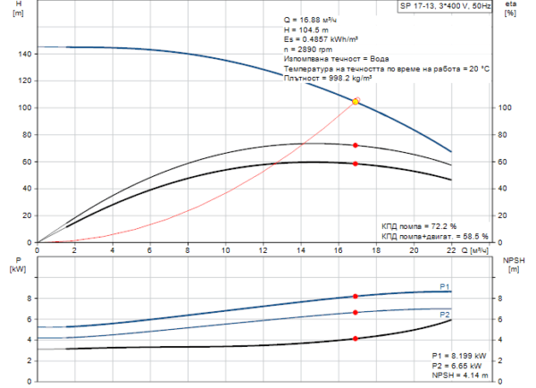 - Скорост на помпата на която са базирани данните: 2900 rpm